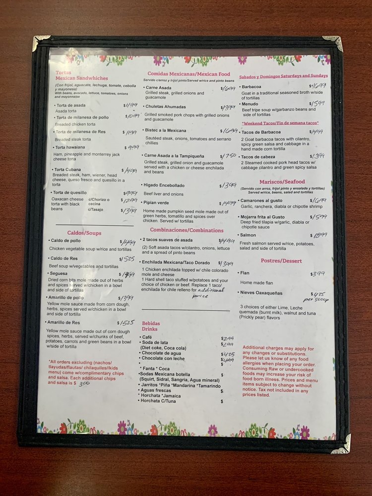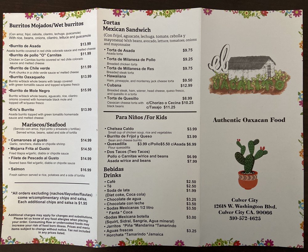 El Jacalito Oaxaqueño Menu